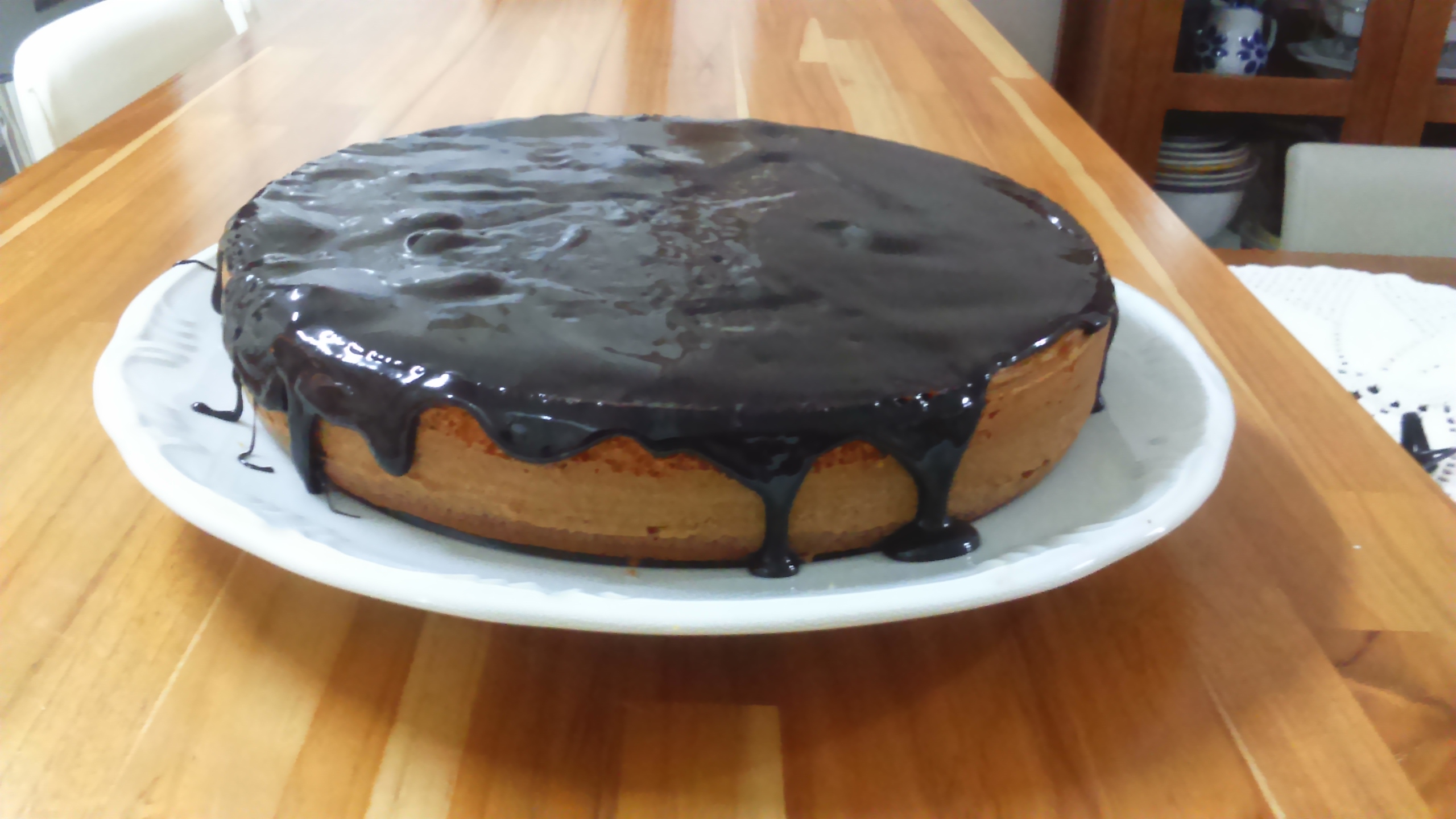 3. Regue a calda quente sobre o bolo já frio e desenformado e deixe esfriar. Sirva a seguir.